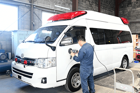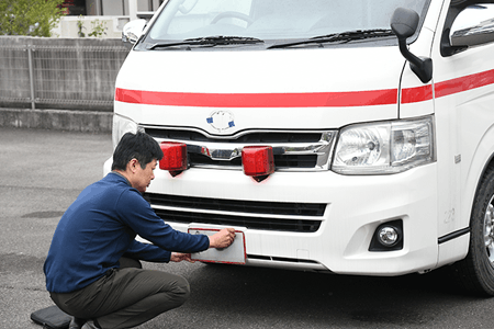 救急車の名義変更・一時抹消をスピーディーに対応しています。買取した救急車は自社工場で車体の所属名を完全削除。削除完了後は写真付き報告書を提出しています。